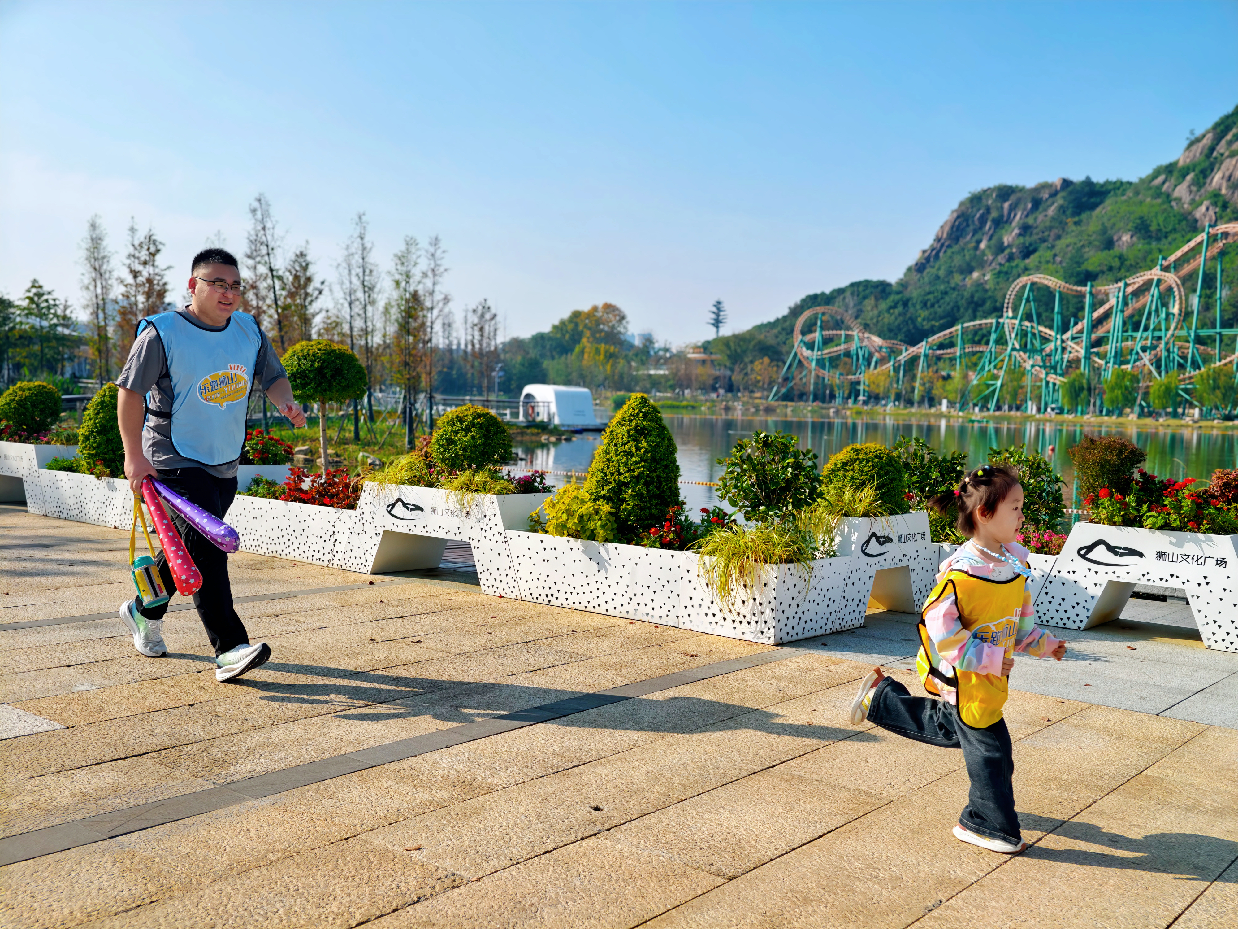 当然,也少不了悠然慢走,醉心风景的人们。他们漫步在秋意盎然的狮山公园,享受难得的亲子时光。